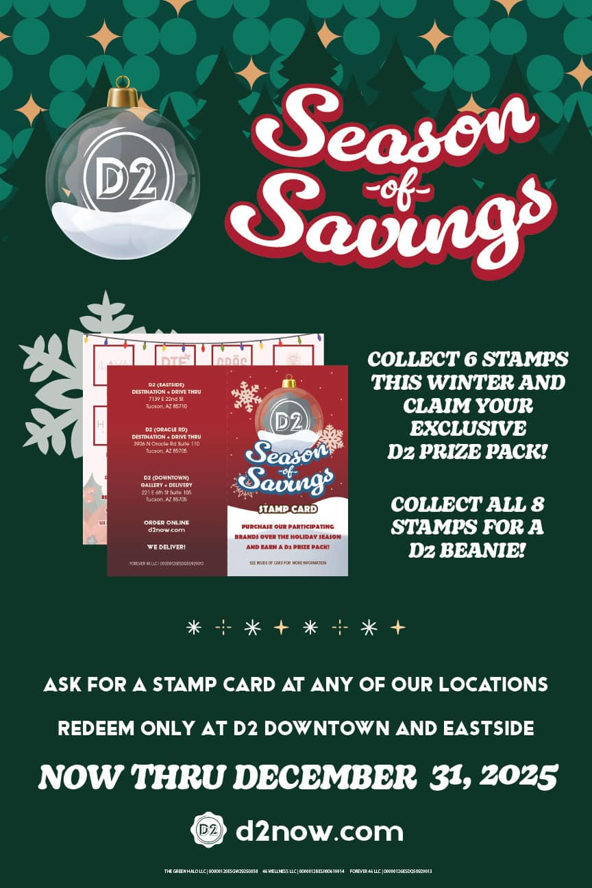 D2 Dispensaries Eastside and Downtown locations serve as Tucson’s premier cannabis destinations and are licensed to dispense 21+ recreational cannabis & medical marijuana products.