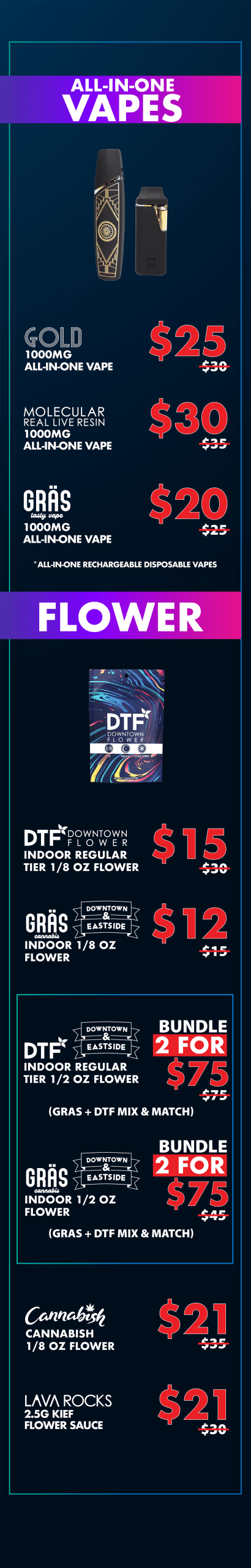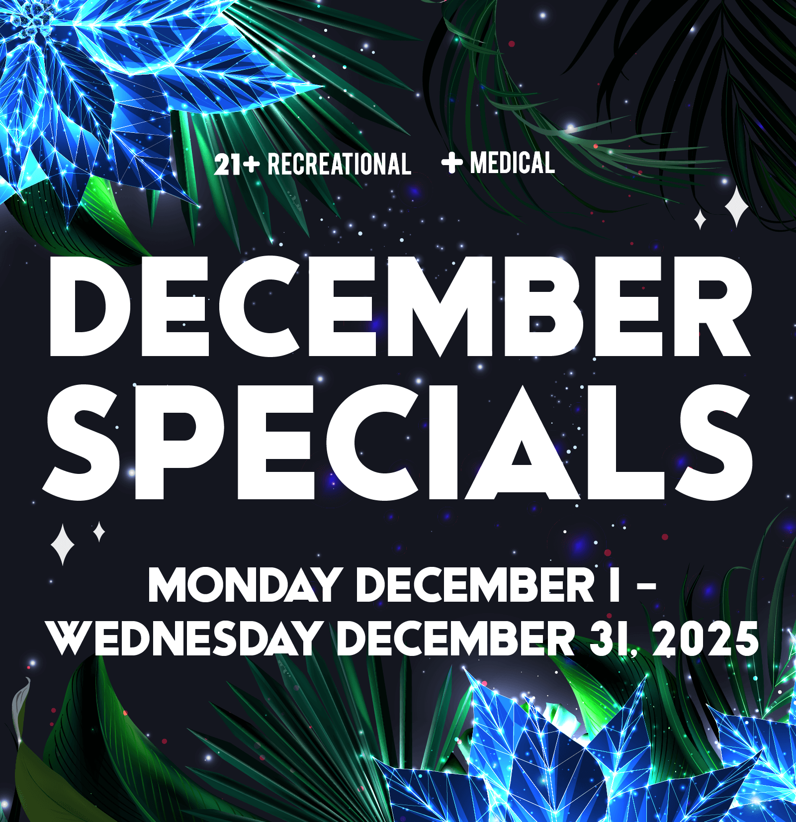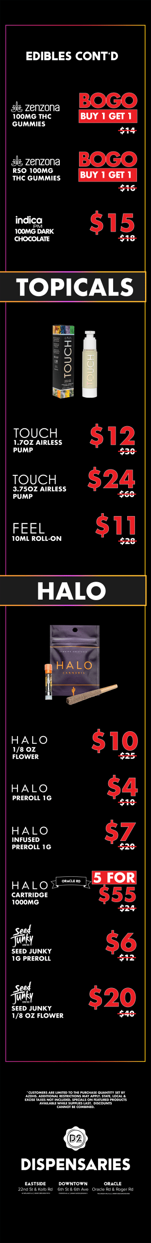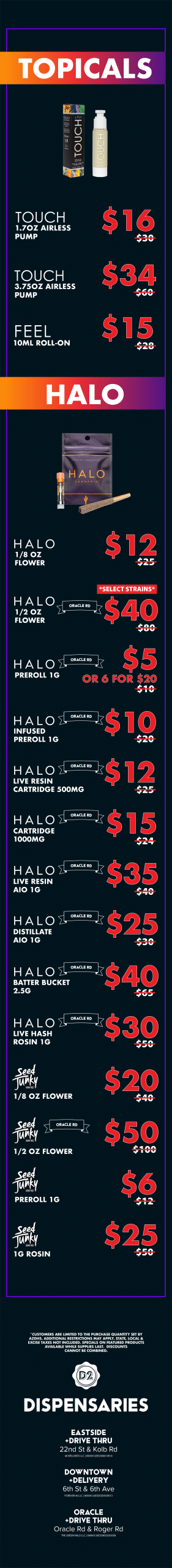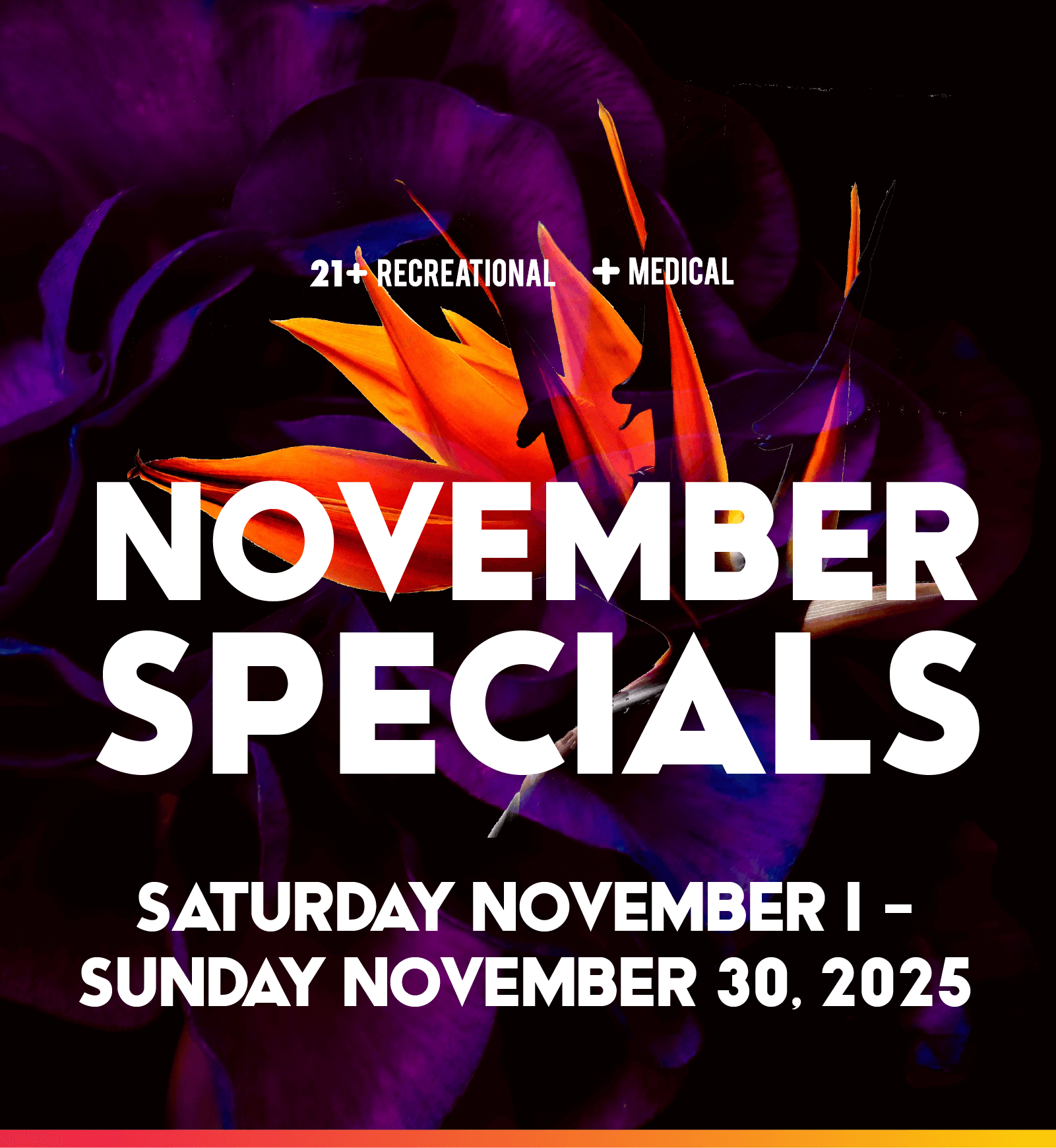 *THE 25% DISCOUNT & 50% DISCOUNT CAN ONLY BE APPLIED TO THE FIRST $200 (EXCLUDING TAX) OF A NEW PATIENT'S ORDER. THE NEW PATIENT SPECIALS CANNOT BE COMBINED WITH ANY OTHER DISCOUNTS OR SPECIALS. ONLY PATIENTS WHO ARE NOT CURRENTLY REGISTERED WITH THE DISPENSARY ARE ELIGIBLE FOR THIS SPECIAL.