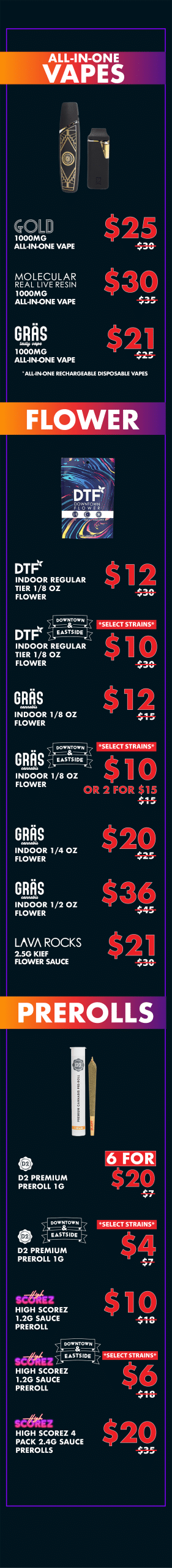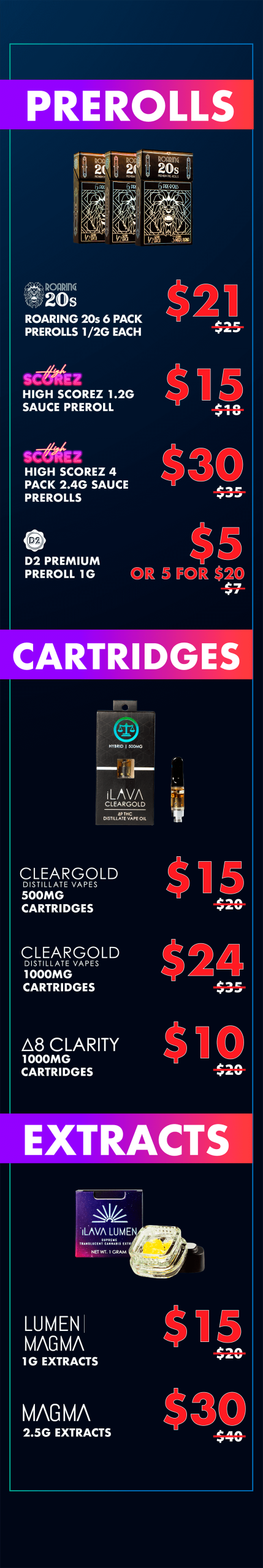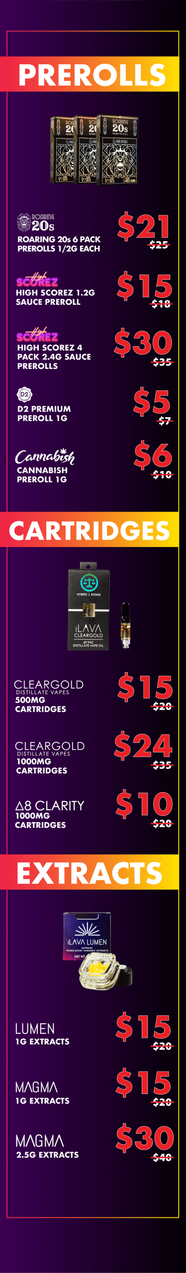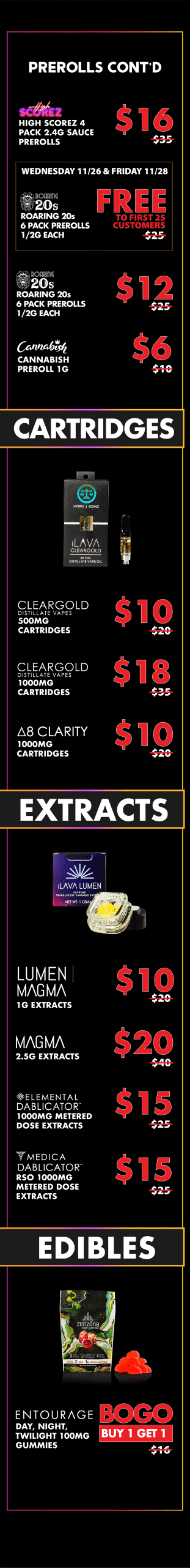25% OFF FLOWER, CONCENTRATES, EDIBLES, TINCTURES, TOPICALS AND PREROLLS.*