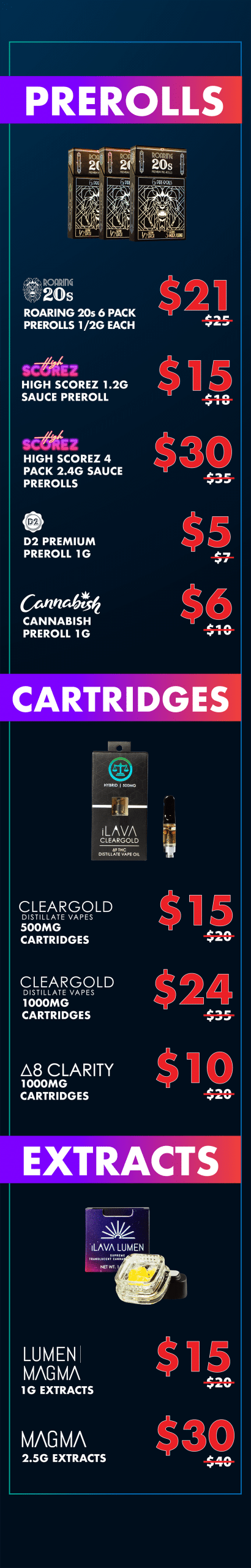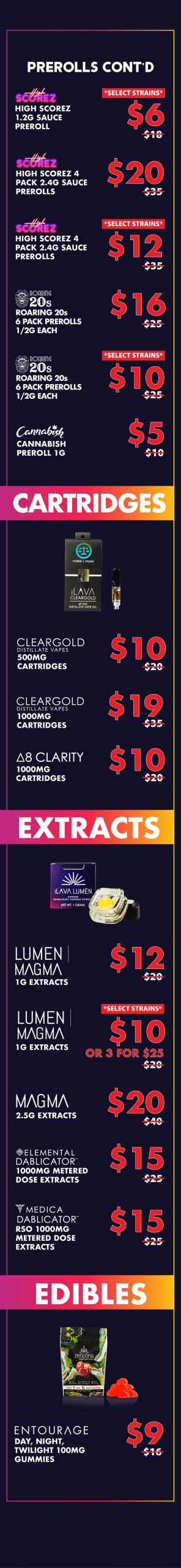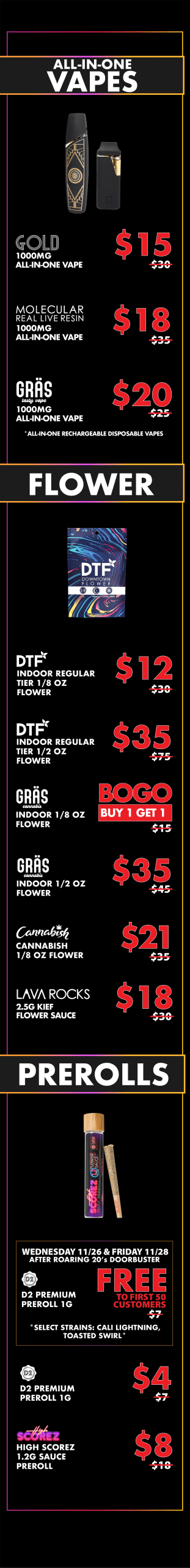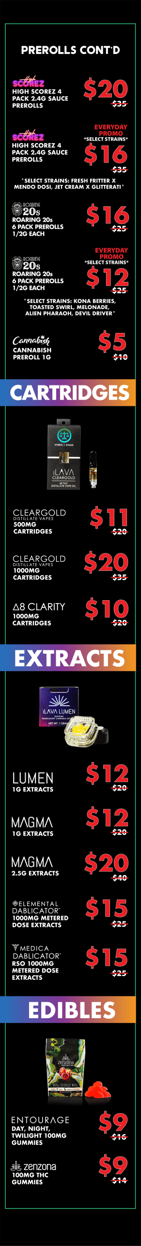 25% OFF FLOWER, CONCENTRATES, EDIBLES, TINCTURES, TOPICALS AND PREROLLS.*